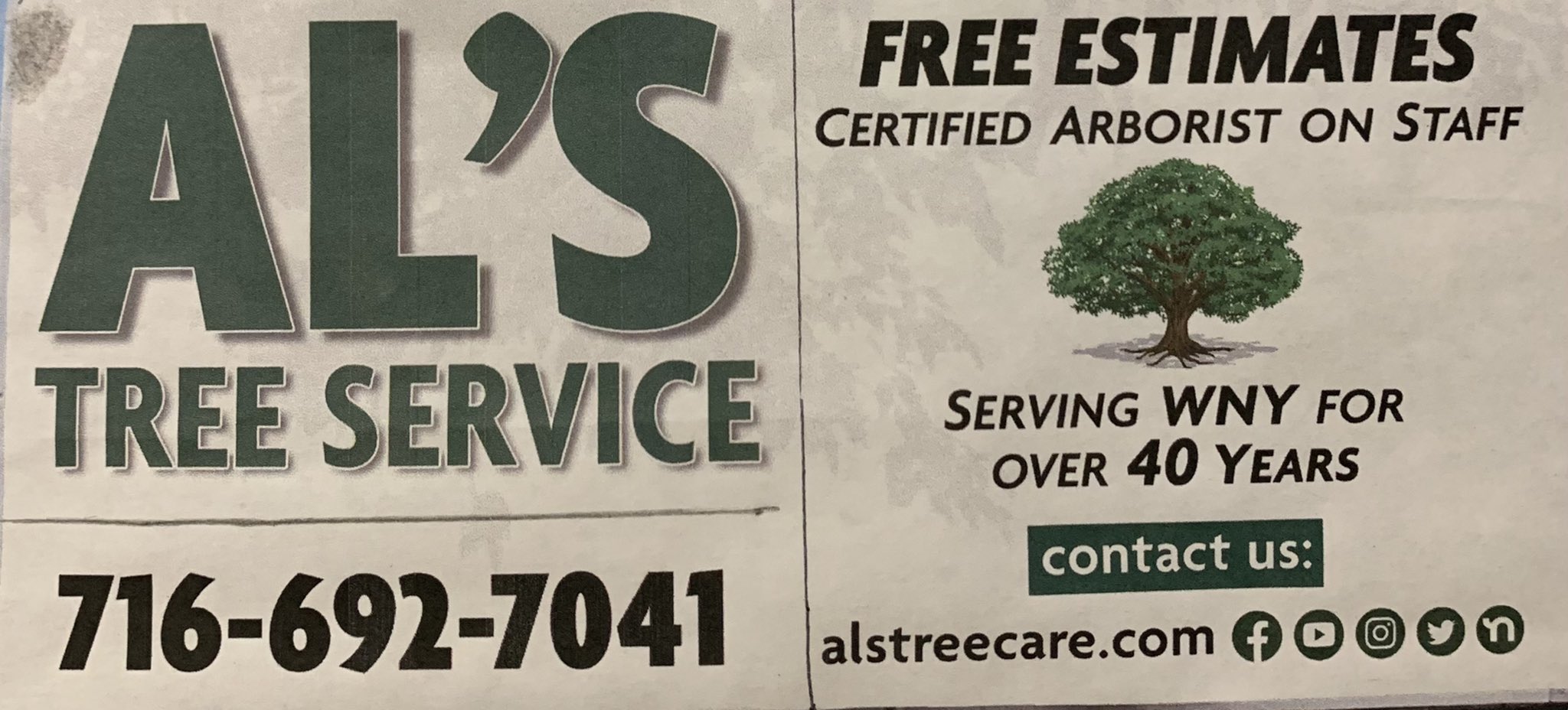 Call direct at 716 692-7041 or visit our website. Als Tree Service Business ProfileAls Tree Service Tree Service Contact Information 650 Two Mile Creek Rd Tonawanda NY 14150-5814 Visit Website 716 692-7041 Customer Complaints.